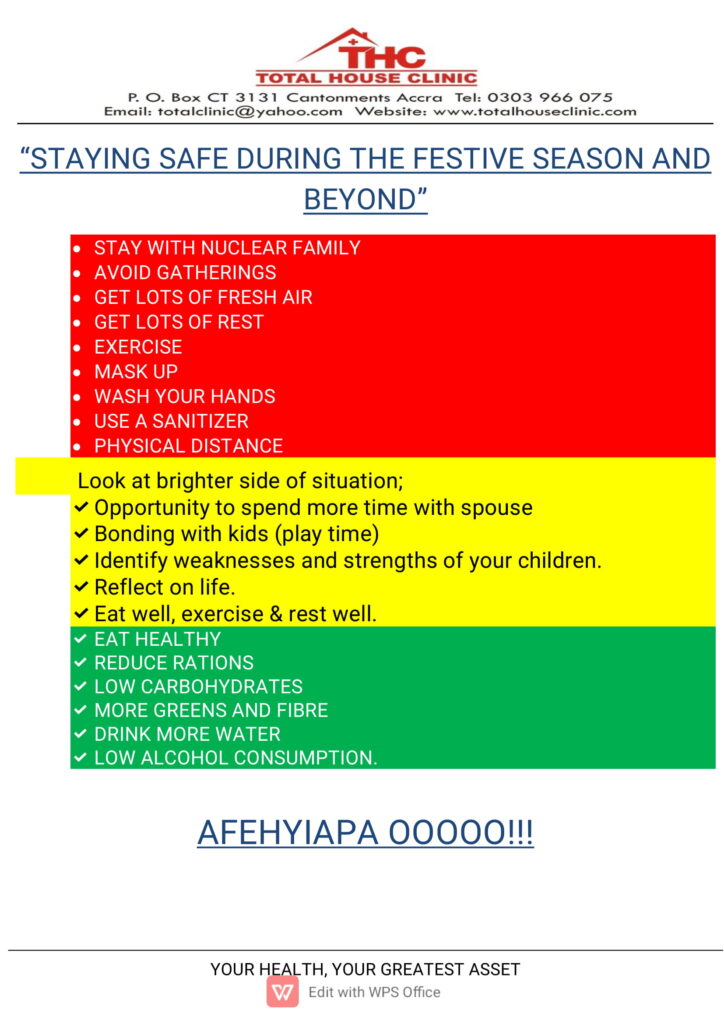 Total House Clinic wish you AFEHYIAPA OOOOO!!!. Health tit bits to help you Stay safe during this festive season and beyond.